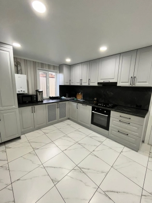 Новый жилой дом общей площадью 109,5 кв м, выполнен капитальный ремонт, МП окна, очень большая и удобная кухня-столовая, просторный совмещенный сан. узел, три изолированные жилые комнаты, гостиная. В прихожей, сан. узле, гостиной и кухне теплый пол, счетчики (газ, вода, свет), отопление газовый котел. Два входа в дом. Дом строился из качественных материалов. Во дворе капитальный навес, гараж, земельный участок 6,71 сотки, участок межеван. Дом продается частично с мебелью. Реальному покупателю разумный торг уместен.