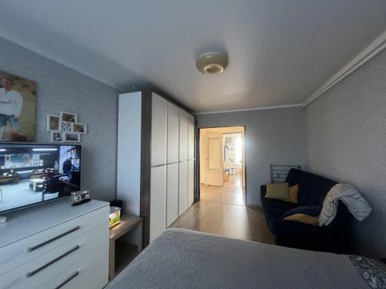 3-х комнатная квартира общей площадью 59,8 кв м. В квартире расположены три жилые комнаты (35,6 кв м), кухня 9,1 кв м, коридор 9,2 кв м, лоджия 3,9 кв м, раздельный сан. узел. Установлены МП окна, новый котел. выполнен хороший ремонт. Установлены счетчики на газ, свет и воду, коммунальные платежи небольшие.
